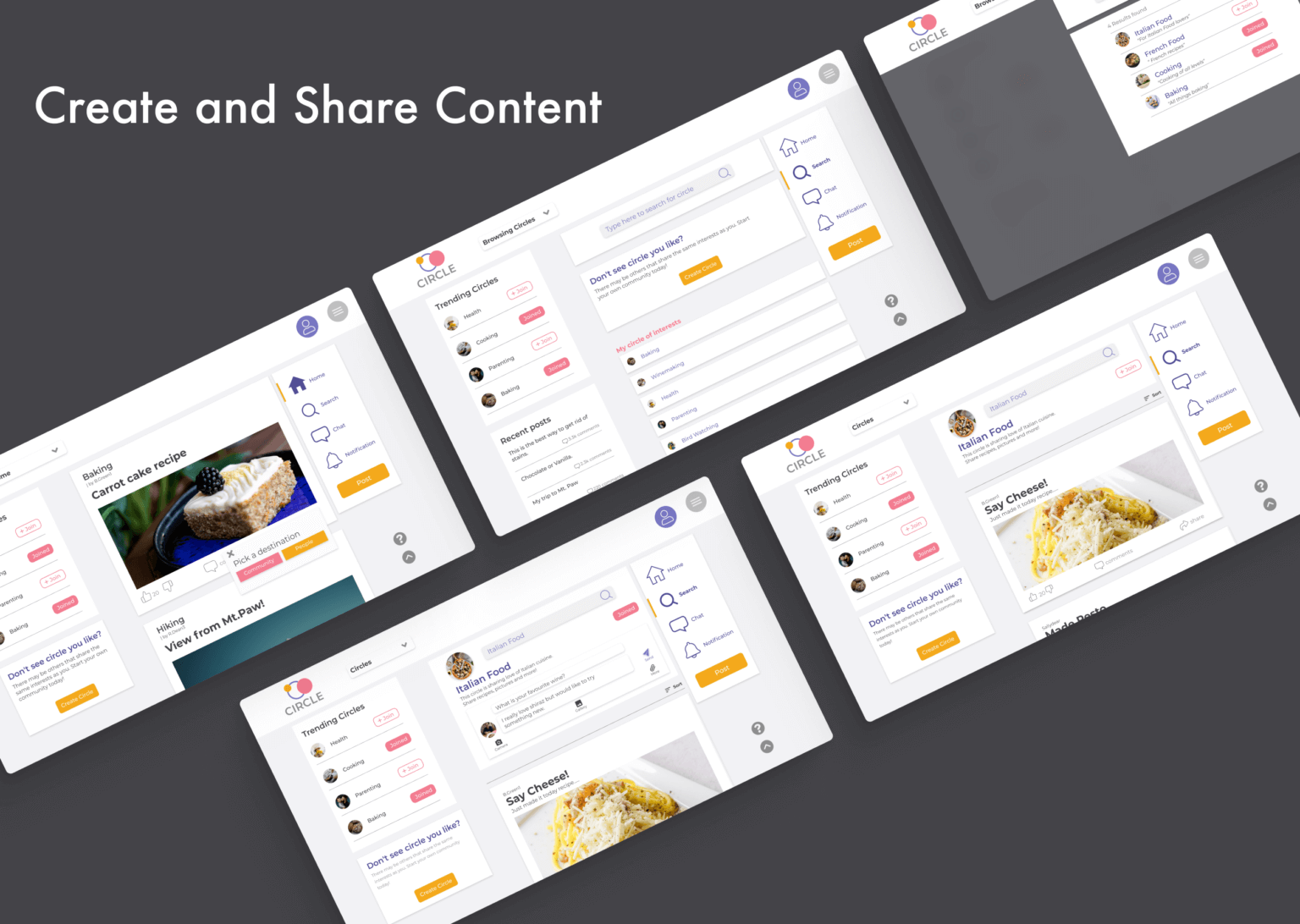 Accessible comprehensive social media platform that is easy to navigate and encourages both producer and consumer roles. The circle is available on multiple devices and allows elderly users to cultivate a sense of purpose and belonging in their later stages of life.